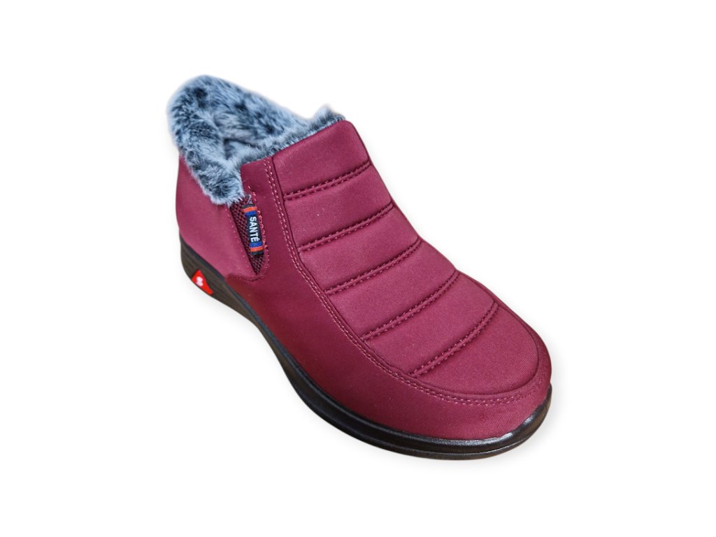 Elegantní a praktické boty na chladné dny. Textilní svršek je velmi lehký, uvnitř příjemně hřejí díky jemnému kožíšku. Pro maximální komfort mají vyjímatelnou stélku a na nártu dvě pružné vsadky, které usnadňují obouvání. Mírně zvýšený podpatek (3 cm) dodává stabilitu i elegantní vzhled.