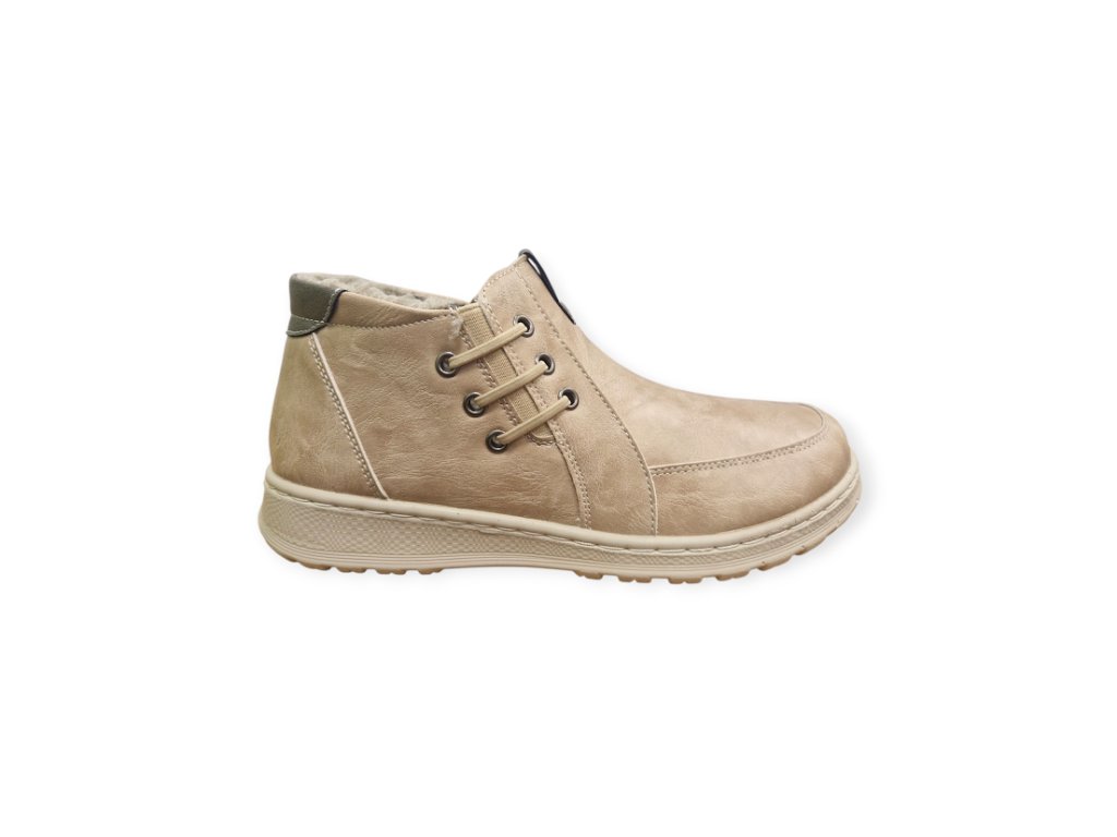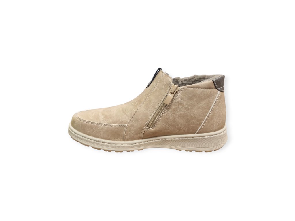 Stylové a pohodlné dámské polokotníkové boty v kombinaci béžové a hnědé kůže, ideální pro chladnější období. Díky pružné vsadce a bočnímu zipu se snadno obouvají a perfektně přizpůsobí chodidlu.