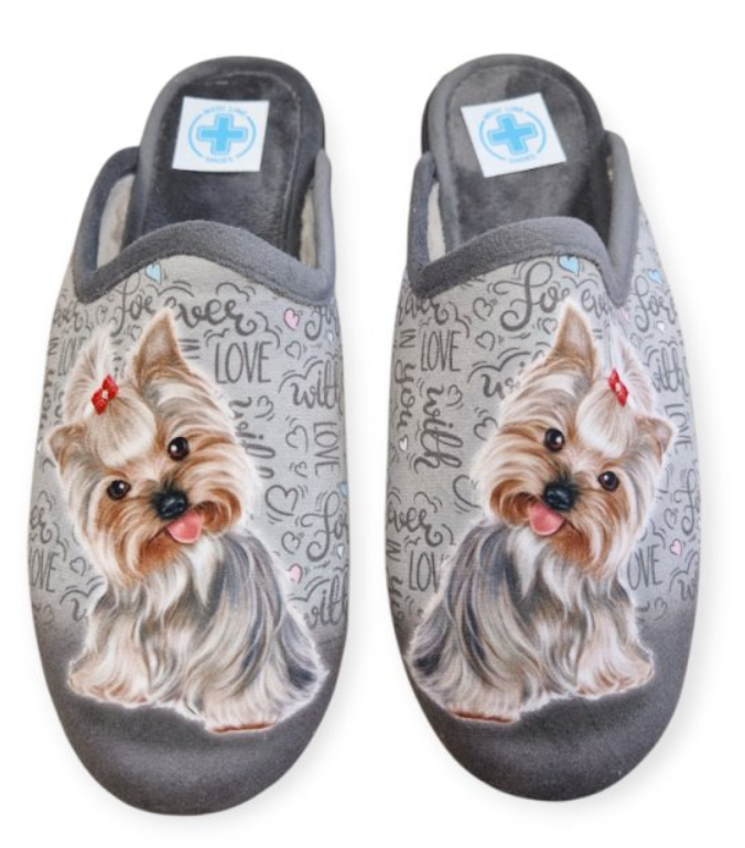 Dámské domácí pantofle Medi Line 134-025 šedé/pes