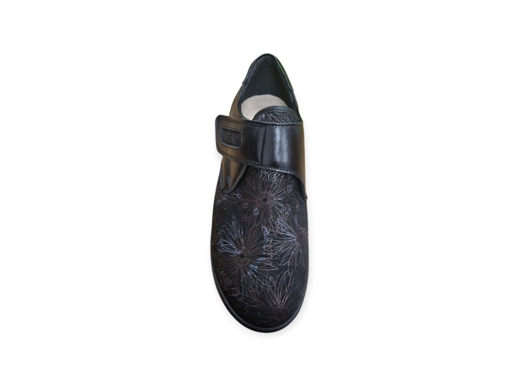 Model je vyroben v kombinaci kvalitní kůže a pružného neoprenu, díky čemuž se perfektně přizpůsobí deformitám nohy, jako je například Hallux, nebo kladívkové prsty.
