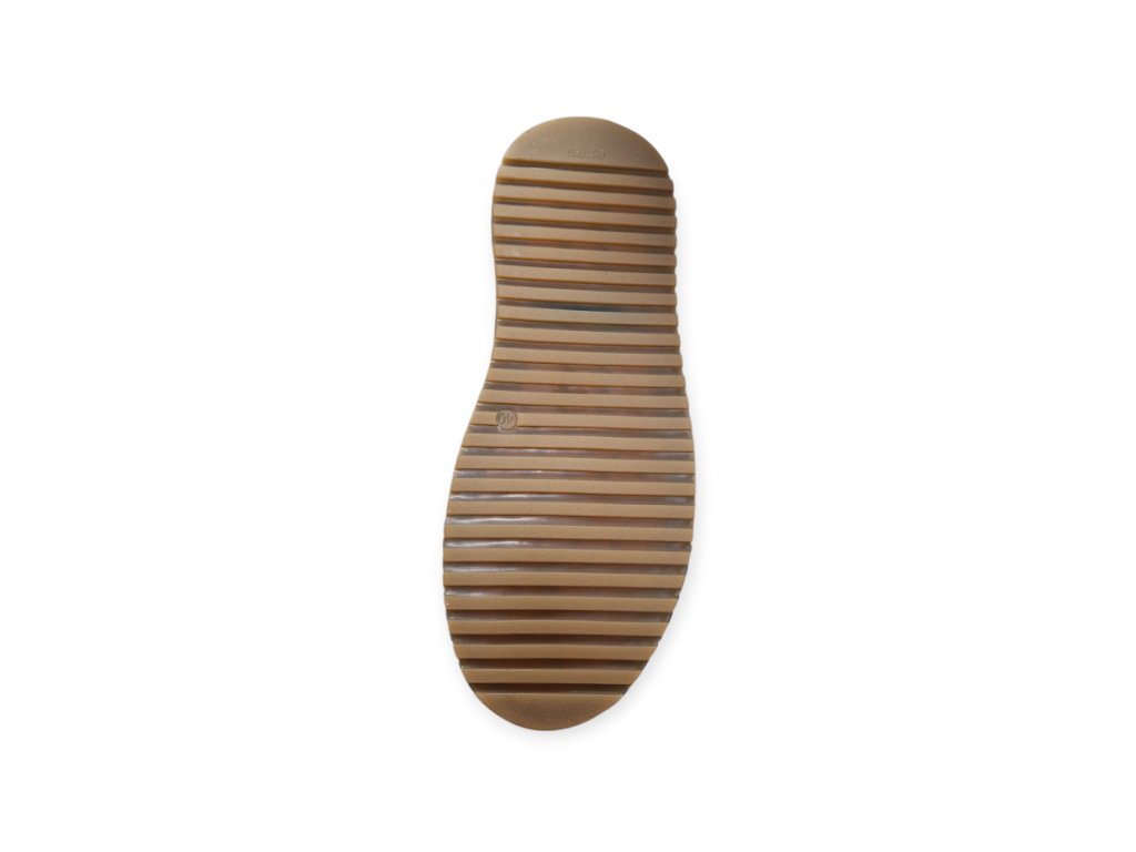 Svršek z kvalitní hnědé kůže doplněný černou textilií v oblasti kotníku pro lepší flexibilitu