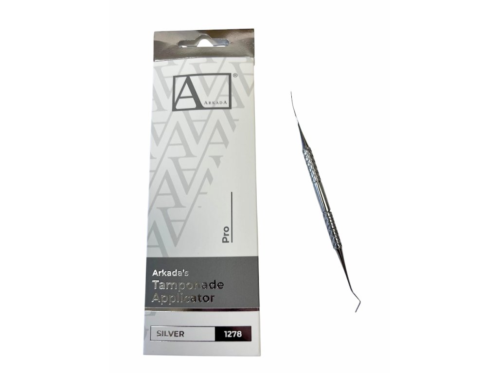 Aplikátor tamponády. Široká ploska aplikátoru umožňuje snadné zavedení tamponády.